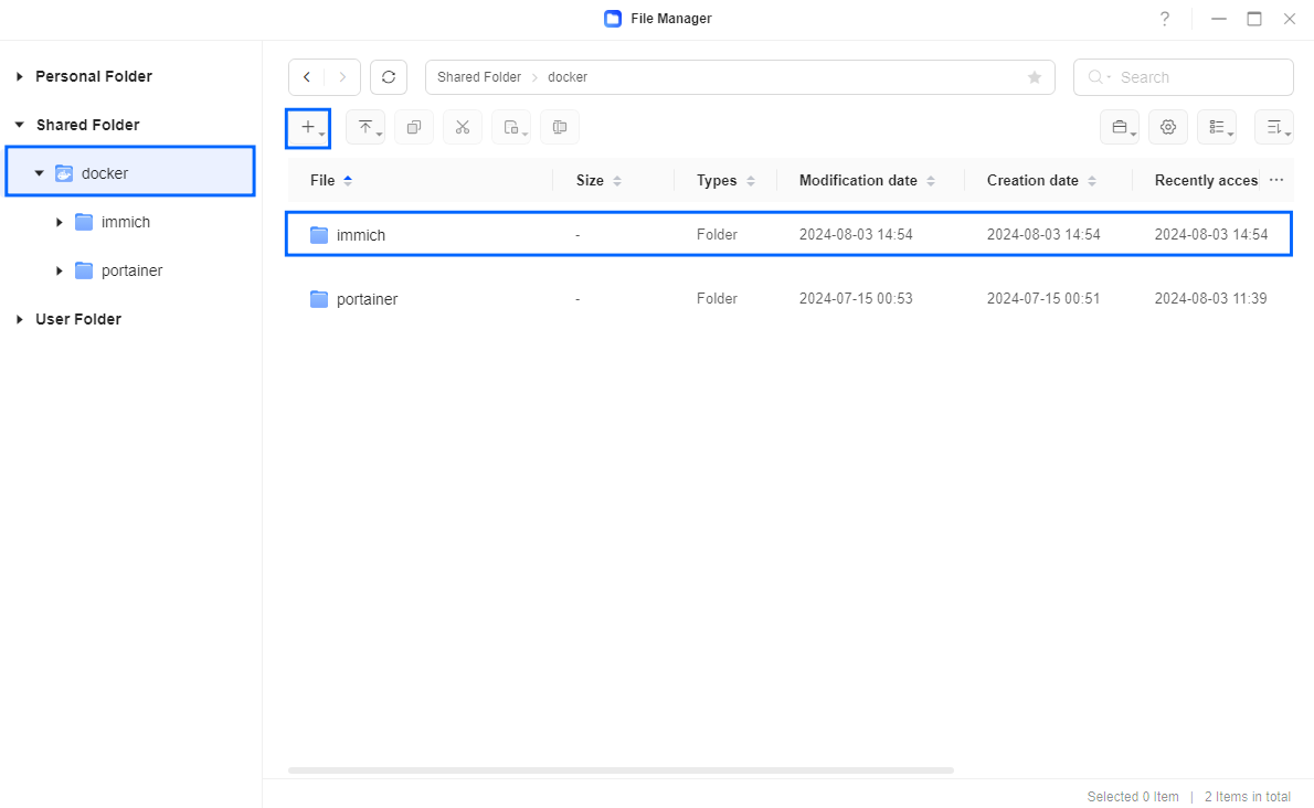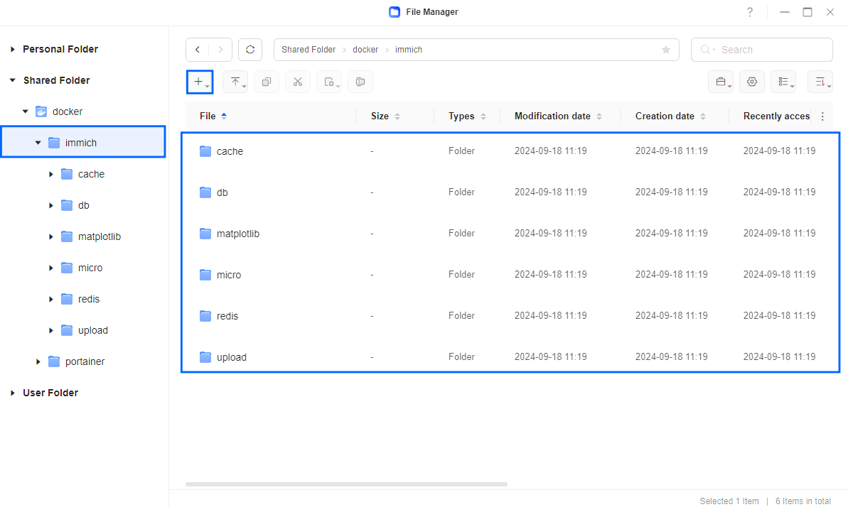 - 'immich' 하위 폴더로 'cache, db, matplotlib, micro, redis, upload' 6개 폴더 생성