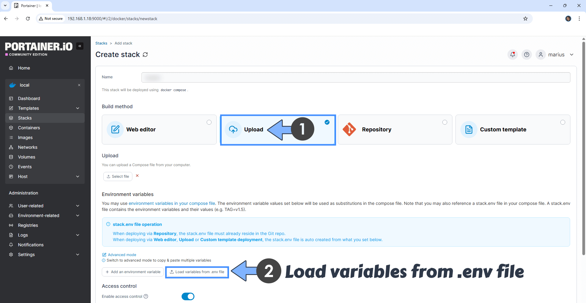 - Upload - Load variables from .env file 클릭. 하단 파일 다운 후 upload.